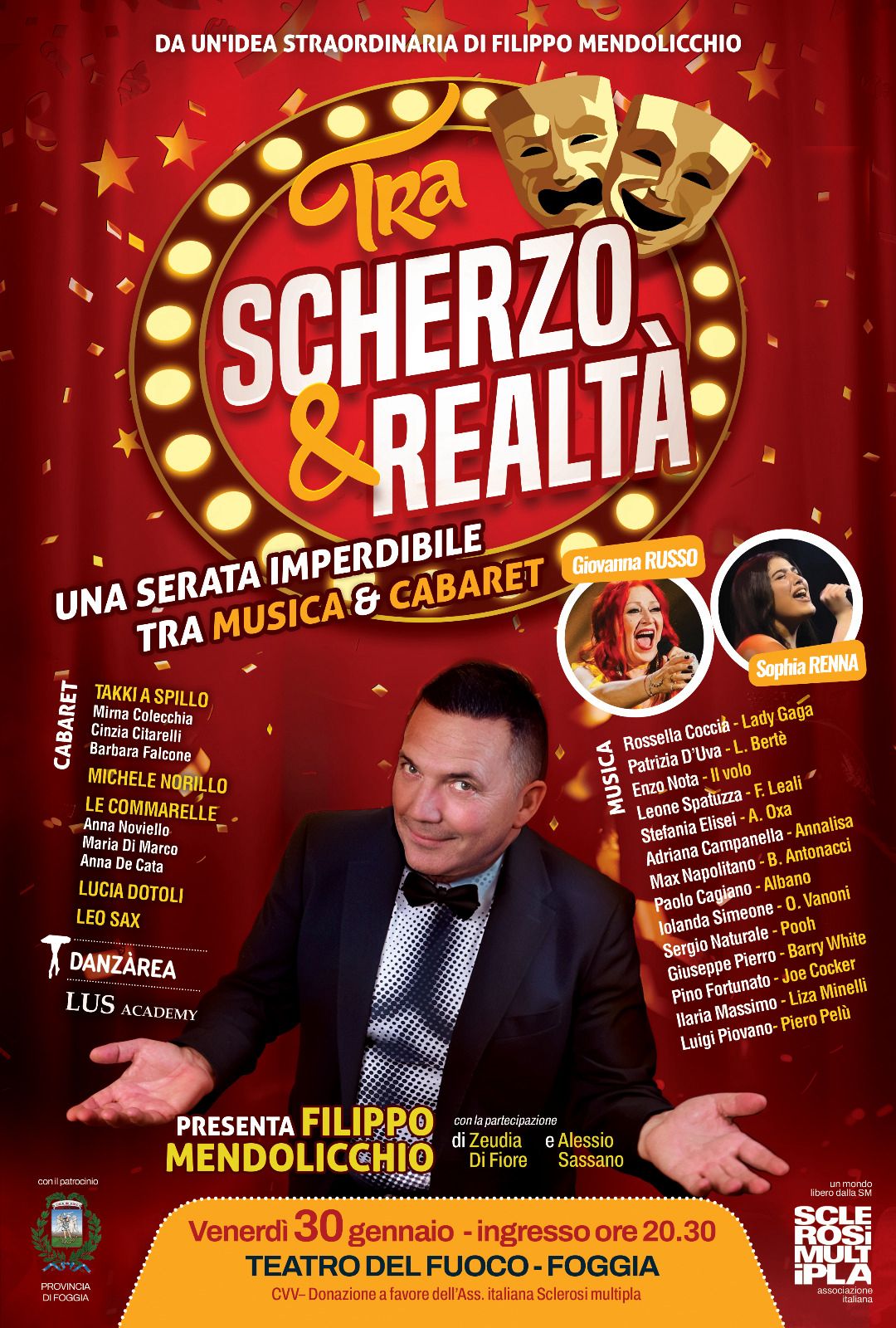 Dopo il successo del primo spettacolo “Tale e quale no”, il 30 gennaio Filippo Mendolicchio torna in scena con “Fra scherzo e realtà” uno show in cui cantanti e cabarettisti si alterneranno sul palco del Teatro del Fuoco.