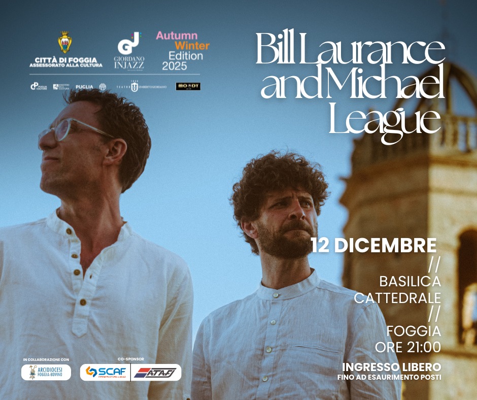 Venerdì 12 dicembre, alle ore 21, la bellissima Cattedrale di Foggia, addobbata di drappi di luci e pervasa da sussurri di suoni, sarà ancora una volta palco e platea di un concerto unico a cura del Giordano in Jazz con il duo composto da Bill Laurance e Michael League.