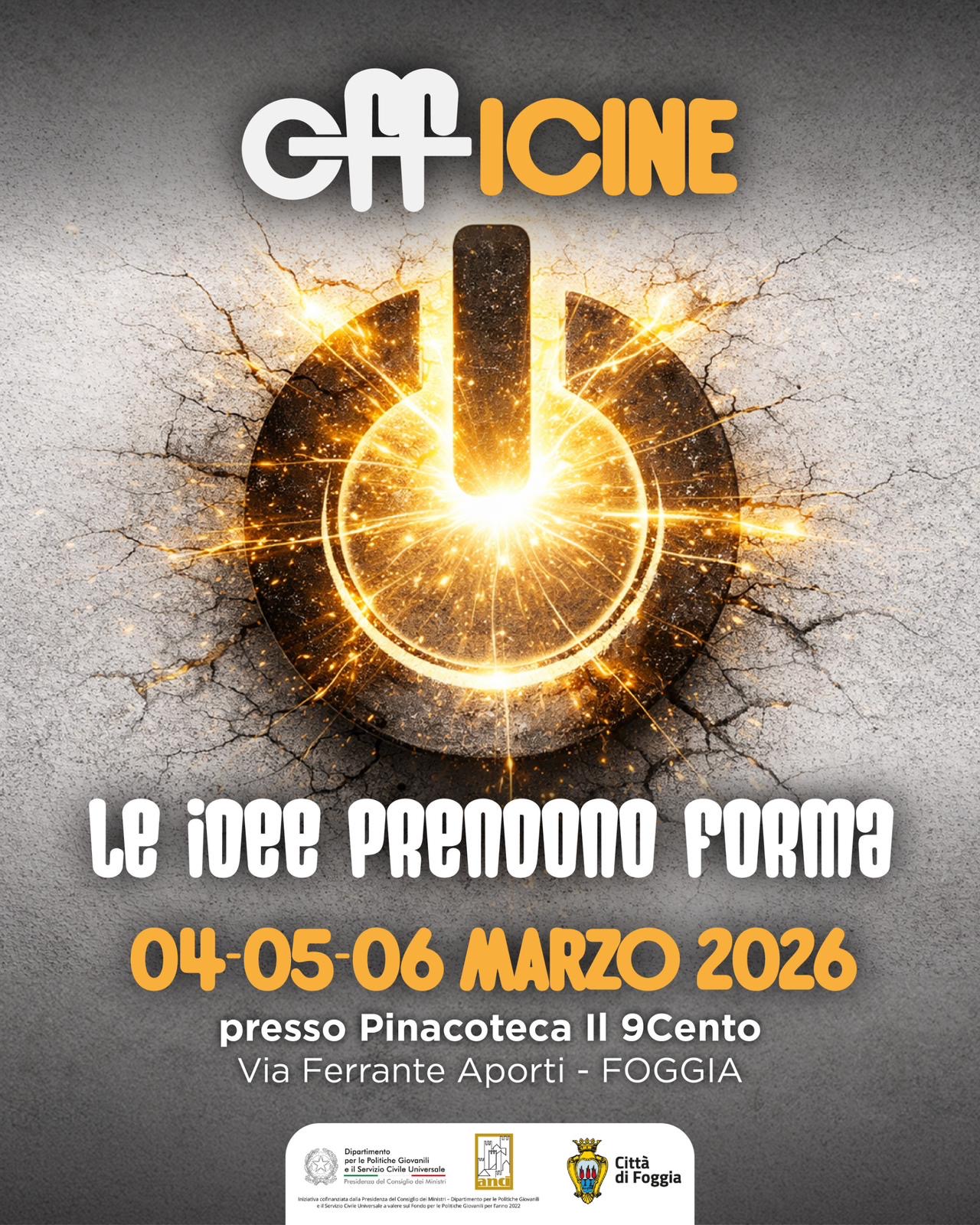 Ridare vita a un luogo fisico e concettuale che sappia essere aggregativo. Riqualificare uno spazio aperto a tutti, diventando, da subito, un punto di riferimento e di incontro per l’associazionismo cittadino e non solo. È la mission di “Offline/La9cento”, l’iniziativa che spalanca le porte del piano terra della Pinacoteca, in Via Ferrante Aporti, 1. L’iniziativa, promossa dal Comune di Foggia, parte ufficialmente mercoledì 4 marzo con il primo segmento di un processo che intende creare un vero e proprio cartellone di eventi con iniziative nate dalle proposte di enti, associazioni locali o liberi cittadini under 35.