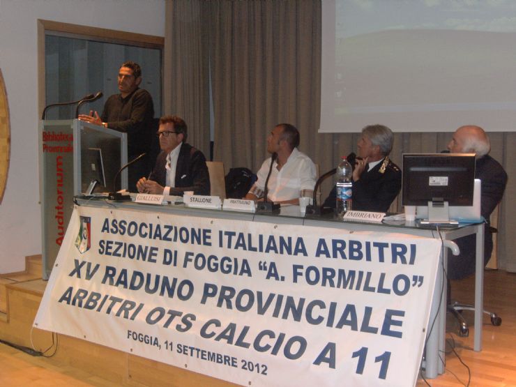 Si è tenuto martedì scorso il raduno annuale degli arbitri appartenenti all'Organo Tecnico Sezionale di Foggia. Alla vigilia dei campionati di competenza (seconda e terza categoria che avranno inizio domenica 23 settembre) i giovani fischietti della provincia sono stati sottoposti a specifici test atletici, quiz regolamentari e hanno ricevuto le disposizioni per la stagione in partenza da parte del neo Presidente Giuseppe Stallone.