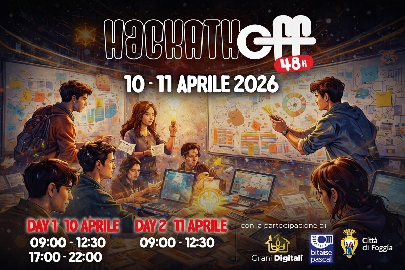 Sarà una giornata all’insegna della creatività, dell’imprenditorialità e delle competenze digitali quella dell’11 aprile 2026, quando andrà in scena HackathOFF, l’evento che vedrà protagonisti gli studenti dell’ITET Blaise Pascal di Foggia presso la Pinacoteca900.