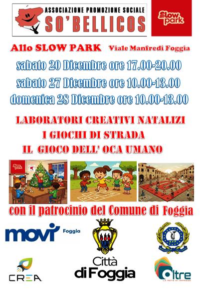 "Il Natale dei Giochi: Tradizione, Divertimento e Creatività". Per il cartellone natalizio promosso dalla Città di foggia, l'associazione So'Bellicos propone un trittico di eventi che si terranno presso lo Slow Park, in viale Manfredi.