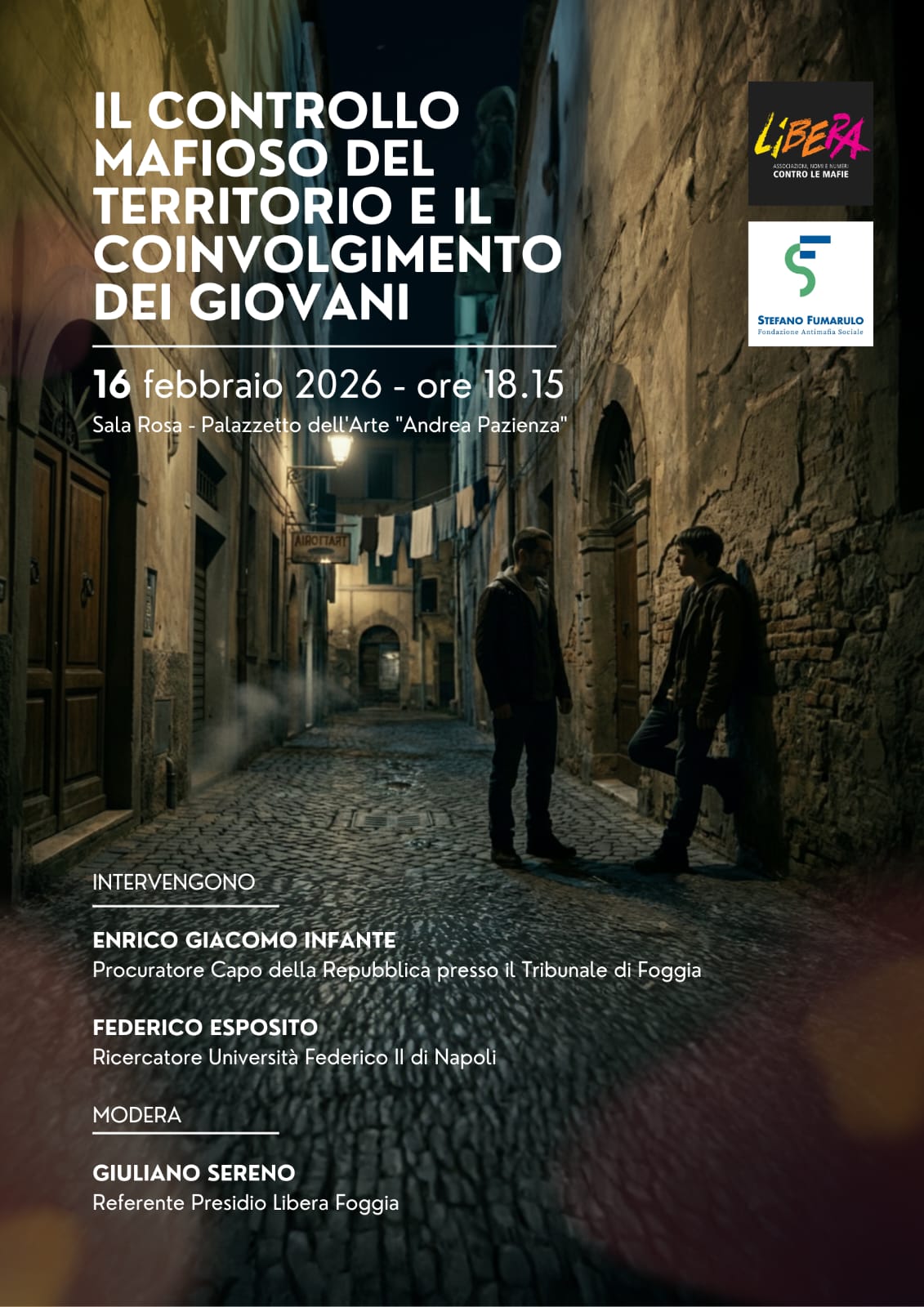 Legalità e giustizia sociale, a Foggia incontro sul "controllo mafioso del territorio e il coinvolgimento dei giovani"
