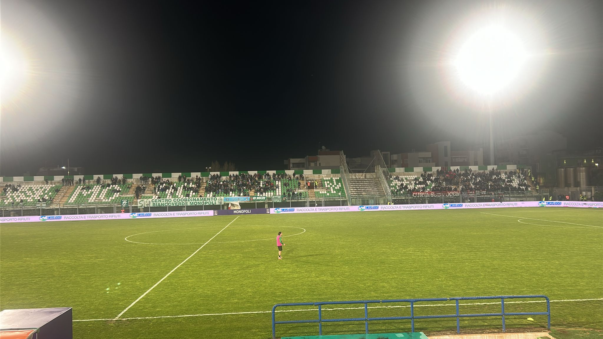 FALL GOL. Nella ripresa, Pazienza getta nella mischia Dimarco per Valietti mentre nel Monopoli entra Fedel per Greco. Al 47’ Bevilacqua non riesce a controllare in area un buon assist di Buttaro. Più pesante l’errore due minuti dopo: D’Amico mette un ottimo cross al centro, l’attaccante centrale rossonero è solo nell’area piccola ma colpisce male la palla e manda alto. Risponde il Monopoli al 52’ con Battocchio su punizione che costringe Perucchini a metterci i pugni. Al 53’ i padroni di casa passano: Fadel serve Fall in contropiede che fulmina Perucchini e porta in vantaggio i suoi, nonostante le proteste rossonere per un paio di possibili falli. Pazienza prova a dare una scossa: dentro Oliva per Giron. Al 62’ ci sarebbe il raddoppio del Monopoli con Fedel ma il fuorigioco di Calcagni rende tutto vano. Il Foggia non dà l’impressione di riuscire a reagire più di tanto, complice anche l’atteggiamento del Monopoli che continua a pressare. Nei padroni di casa va dentro anche Ronco per Bove. Al 75’ Cangiano conclude al centro dell’area su cross di Buttaro, ma la sfera finisce ampiamente alta. Colombo manda dentro anche Vinciguerra per Fall. All’80’ è più convincente D’Amico che nella confusione dei rimpalli in area trova una buona conclusione ma Albertazzi respinge. Pazienza si gioca anche le carte Nocerino per Menegazzo, Garofalo per Cangiano, Castorri per Romeo. Cambia anche il Monopoli: fuori Calcagni e Longo, dentro Bagatti e Dudic. Nel recupero alcuni tifosi rossoneri invadono il Veneziani e la gara viene interrotta. Dopo attimi di tensione si riprende ma non succede altro. Il Foggia dovrà vincere domenica contro la Salernitana ma potrebbe non bastare. E’ il momento più drammatico della recente storia rossonera.