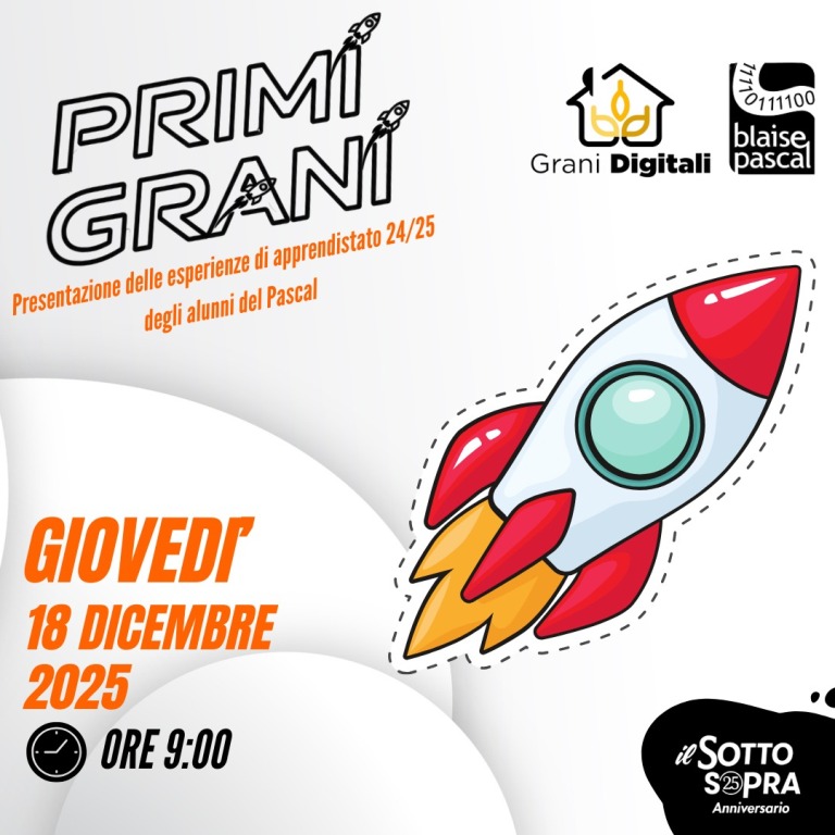 Giovedì 18 dicembre alle ore 9.15, presso l’ITET Blaise Pascal, si terrà un incontro dedicato al progetto Primi Grani, un momento di confronto e condivisione che mette al centro l’esperienza degli studenti coinvolti nell’Apprendistato di Primo Livello.