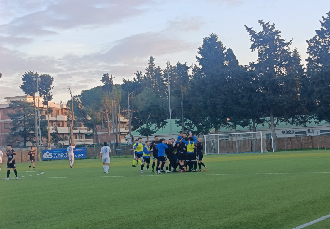Questo è l’ultimo episodio entusiasmante della partita. I restanti minuti vengono trascorsi con la Cosmano che gioca con il cronometro, cercando di tenere lontani dalla propria area gli avversari. La partita si conclude quindi con il risultato di 2-1 per i foggiani.