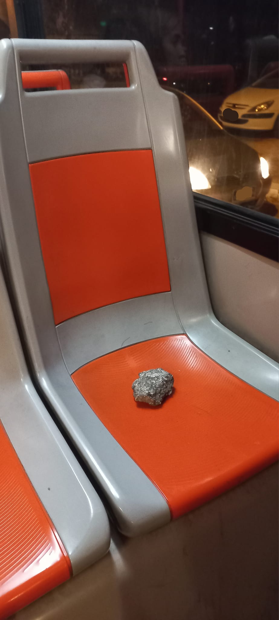 TRAGEDIA SFIORATA. È questa la testimonianza corredata da foto eloquente di una lettrice di Foggia Città Aperta che ieri sera 30 ottobre, intorno alle 19, si trovava a bordo della linea n. 5 al capolinea del Policlinico Riuniti. Contro l’autobus dell’Ataf, appena ripartito, è stato lanciato un sasso che dopo aver attraversato un finestrino aperto ha finito la sua corsa ai piedi di un sedile fortunatamente vuoto. Il sasso di dimensioni notevoli avrebbe sicuramente potuto uccidere e, naturalmente, i presenti sono rimasti scossi. Le forze dell’ordine sono state allertate telefonicamente da chi era a bordo dell’autobus e lo hanno raggiunto per avviare le indagini.