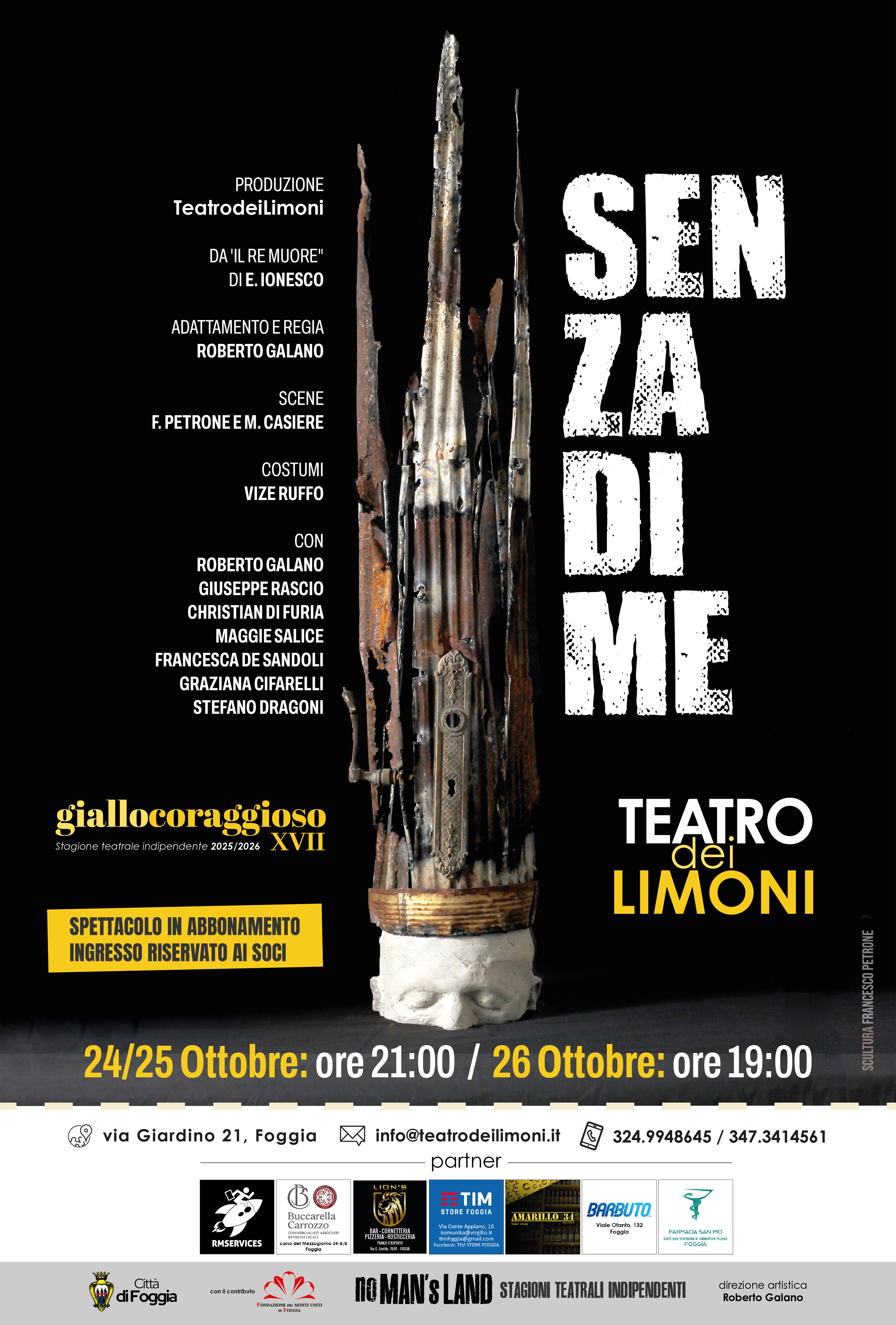 Primo appuntamento con la XVII edizione di giallocoraggioso, la rassegna teatrale indipendente del Teatro dei Limoni: il 24, 25 e 26 ottobre andrà in scena "Senza di me", tratto da "Il Re muore" di Eugène Ionesco, diretto da Roberto Galano.