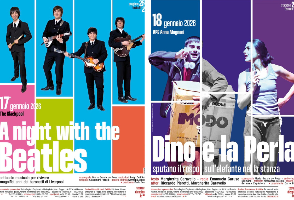 Teatro Regio di Capitanata, doppio appuntamento: in scena ‘A Night with the Beatles’ e ‘Dino e la Perla’
