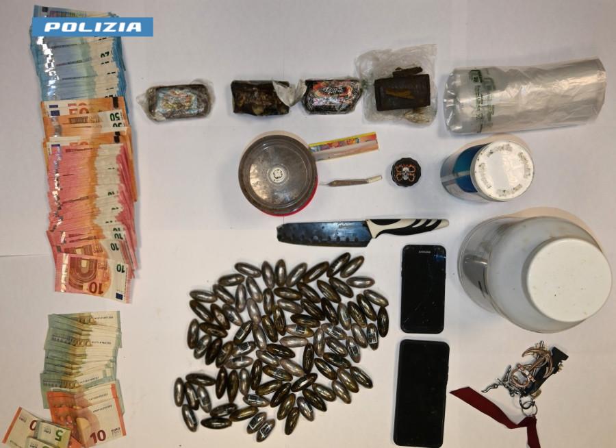 AL CARMINE VECCHIO. Nel dettaglio, gli investigatori della Squadra Mobile hanno attuato con efficacia un dedicato servizio di contrasto alla vendita di sostanze stupefacenti, conclusasi con l’arresto in flagranza di reato di un cinquantenne a Foggia, già gravato da pregiudizi di polizia. Le iniziali attività di osservazione avevano permesso di ipotizzare che l’uomo avesse avviato una fiorente attività di spaccio di plurime sostanze stupefacenti all’interno della sua abitazione ubicata nel rione Carmine Vecchio, agevolata dal continuo flusso di ragazzi che, lì nei pressi, sostavano o si recavano per le più svariate motivazioni. Gli agenti della Squadra Mobile, quindi, hanno eseguito alcuni mirati servizi che confermavano i primi sospetti investigativi. Nello specifico, l’uomo, avvedutosi della presenza dei poliziotti, aveva tentato infruttuosamente di scappare. La fuga è stata smorzata dagli operatori e, a seguito di perquisizione personale, è stato trovato in possesso di qualche dose di stupefacente e somme di denaro, presumibilmente frutto dello spaccio. Nel corso della perquisizione domiciliare è stata rinvenuta altra sostanza psicoattiva oltre a una ragguardevole somma di denaro. Complessivamente sono stati sequestrati oltre 1,2 kg di hashish, quasi 30 grammi di marijuana, 2.675 euro in banconote di vario taglio oltre che svariato materiale utile al frazionamento e confezionamento delle sostanze. L’uomo è stato tratto in arresto e associato presso la Casa circondariale di Foggia.