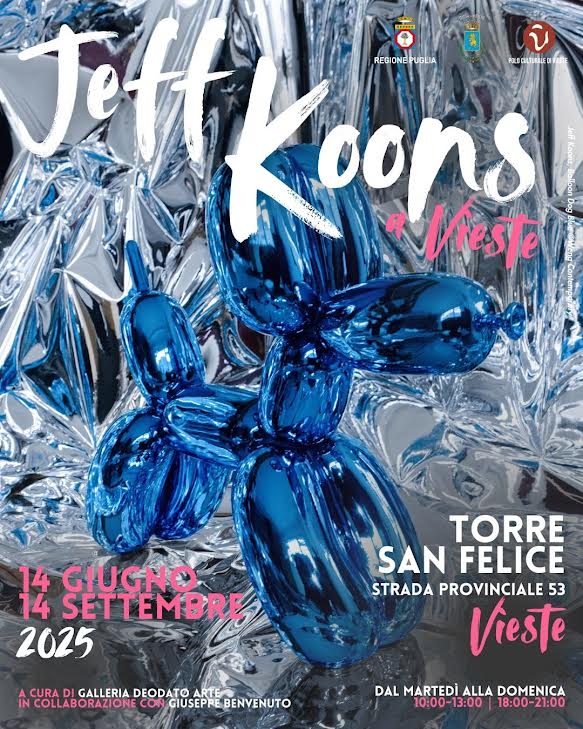 Il Comune di Vieste, in collaborazione con Giuseppe Benvenuto, è lieto di annunciare “Jeff Koons a Vieste”, una mostra a cura della Galleria Deodato Arte, dedicata a uno degli artisti più iconici e influenti dell’arte contemporanea. L’esposizione sarà ospitata nella spettacolare Torre San Felice, dal 14 giugno al 14 settembre 2025, con l’inaugurazione che si terrà giovedì 12 giugno alle ore 19,00, con l’intervento del Sindaco di Vieste Giuseppe Nobiletti e l’Assessore alla Cultura Graziamaria Starace (la mostra sarà visitabile dal martedì alla domenica, ore 10.00-13.00 / 18.00-21.00).