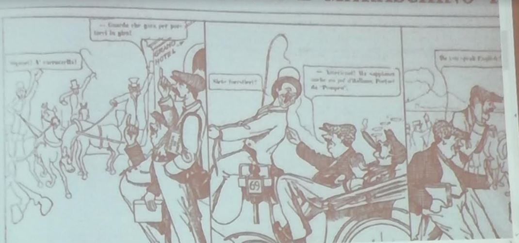 I FUMETTI. Particolarmente interessante, infine, è stata la rappresentazione fumettistica del “migrante” realizzata nella seconda parte del convegno e in cui sono stati raffigurati “tipi ideali” di italiani in America.