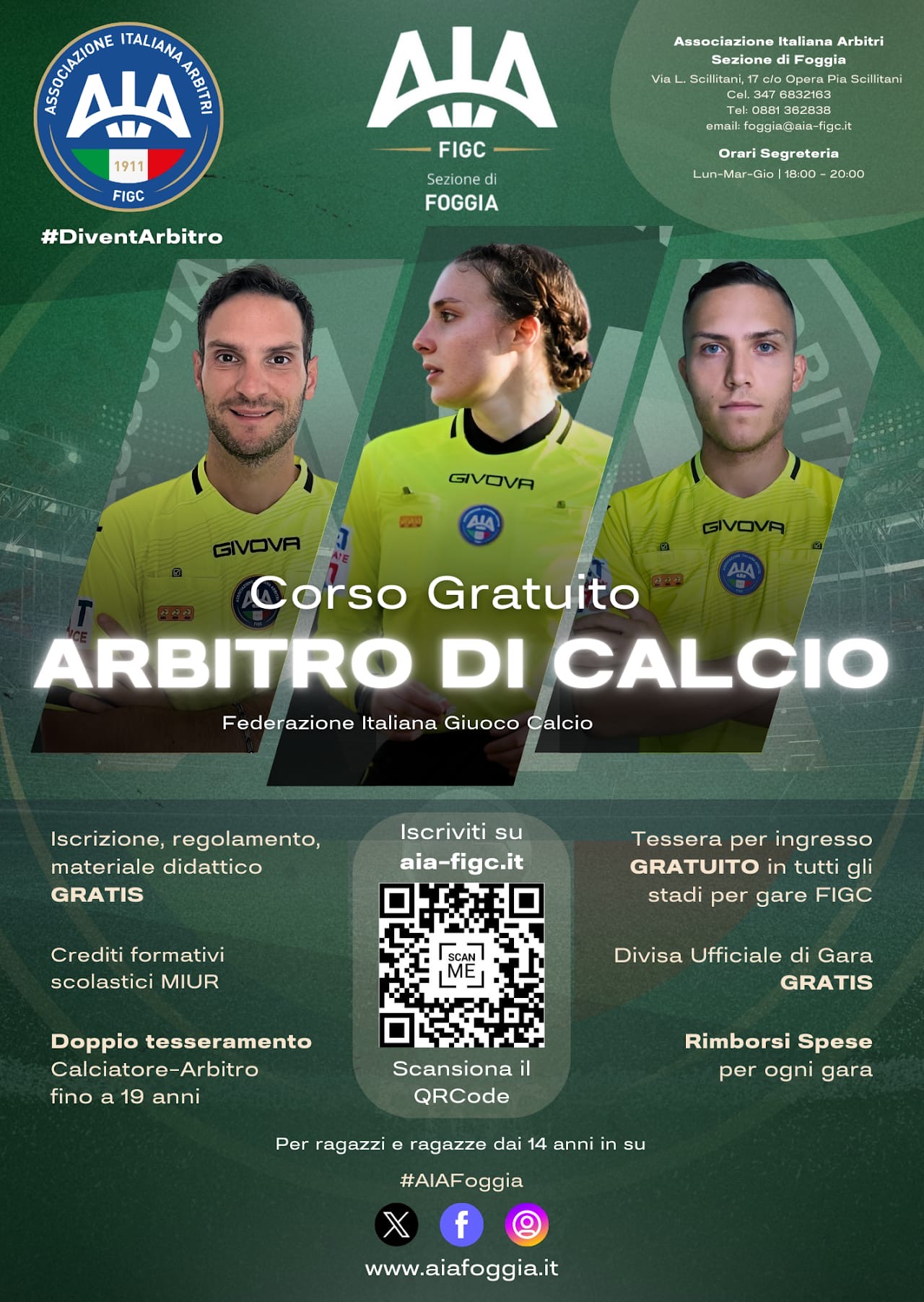LE INFORMAZIONI. Per informazioni e iscrizioni: 3477835395 - 347 683 2163 e foggia@aia-figc.it.
