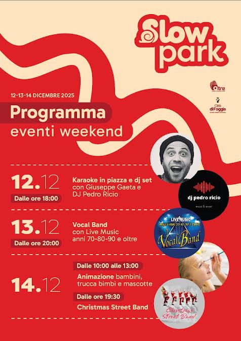 Continuano gli appuntamenti al neonato Slow Park di Foggia, nel quartiere Ferrovia, viale Manfredi di fianco al Nodo Intermodale.