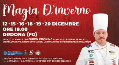 Il programma di “Magia d'inverno”, l'evento natalizio di Ordona con al centro gli show cooking con lo chef Giuseppe Scarlato